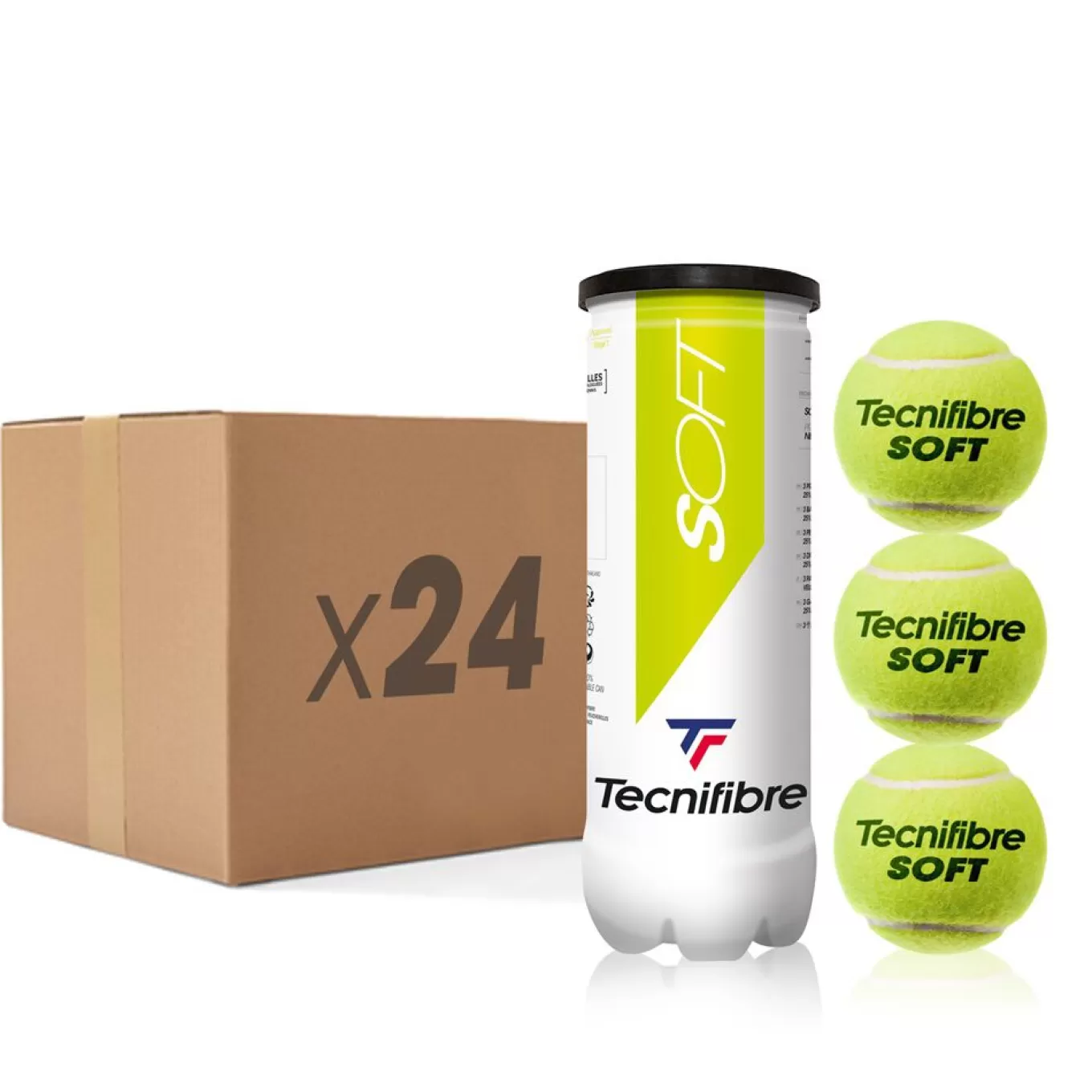 Clearance Tecnifibre SOFT : BOX OF 24 TUBES OF 3 TENNIS BALLS