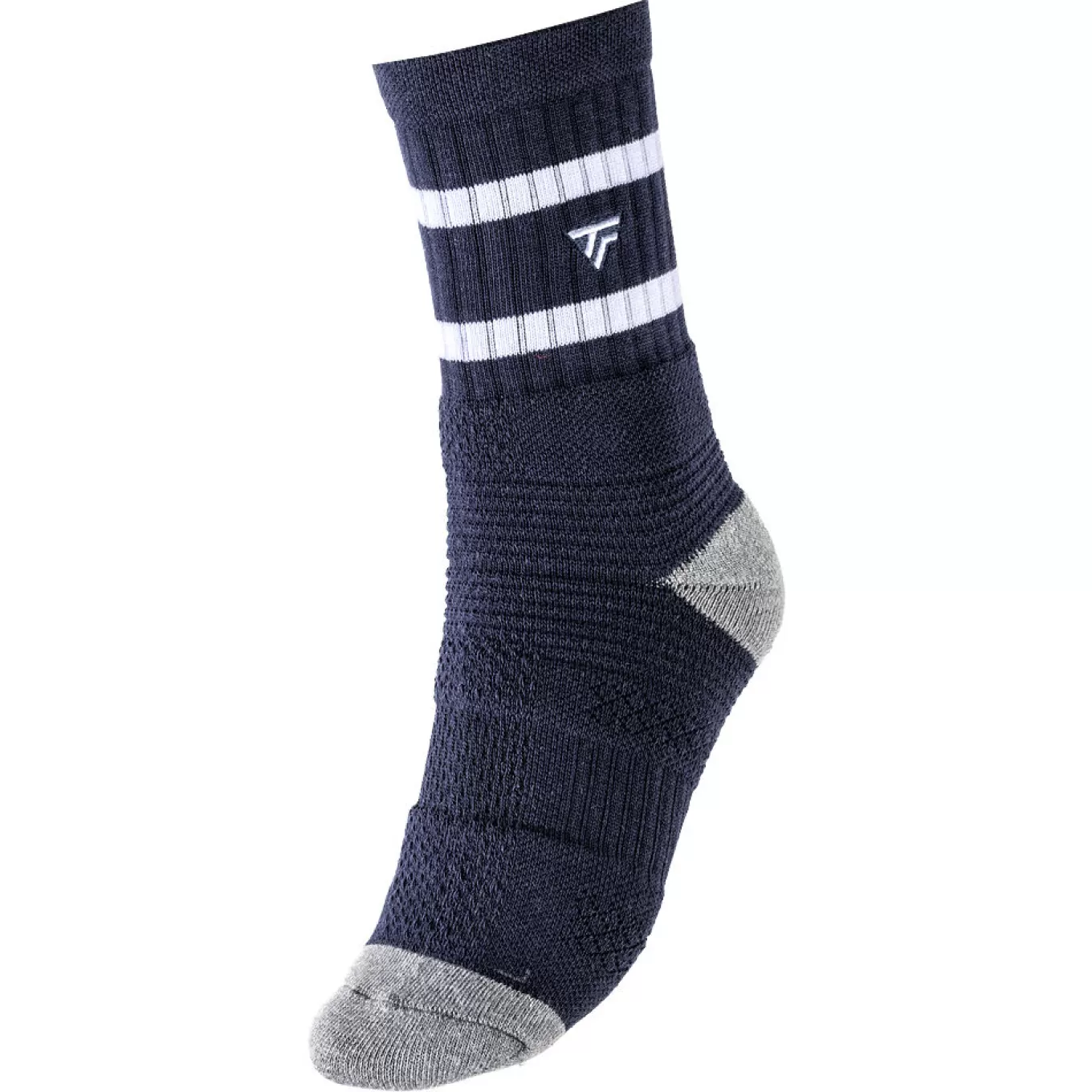 Especialmente desarrollados para los deportes de raqueta, estos calcetines están confeccionados con una base de algodón ultracómodo, mezclado con poliéster para una mayor transpirabilidad y spandex para que el calcetín se adapte perfectamente al pie.