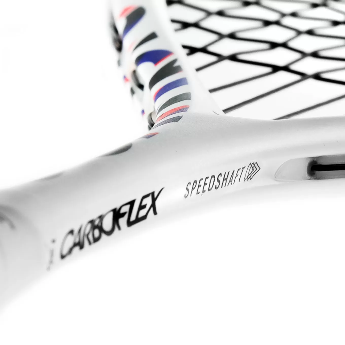 La raqueta de squash CARBOFLEX 130 X-TOP V2 ha sido diseñada para maximizar la velocidad de swing de cada jugador. Es ideal para jugadores habituales y competidores de buen nivel que buscan máxima potencia. Esta raqueta es la más potente de la línea CARBOFLEX gracias a la tecnología JUMBO SHAFT, que mejora la ergonomía del cuello sencillo, permitiendo que la potencia provenga directamente de la raqueta. Con un tamiz de 500 cm², logra el equilibrio perfecto entre potencia y estabilidad. Además, está encordada con multifilamentos de poliuretano Dynamix VP, el cordaje más reactivo de Tecnifibre.